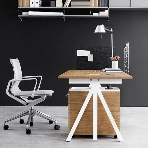 Il tavolo regolabile elettronicamente in altezza offre comfort ed ergonomia alla tua postazione di lavoro consentendoti di stare in piedi mentre lavori. Il tavolo ha una vaschetta portacavi dove tutti i cavi possono essere ordinatamente riposti. L'architetto Anna von Schewen e il designer Björn Dahlström hanno progettato una serie di prodotti completamente nuova utilizzando il sistema String come base. La nuova serie, denominata String Works, offre soluzioni flessibili e adattabili per gli ambienti di lavoro moderni. I mobili della serie String Works sono adatti sia per l'uso in ufficio che a casa.